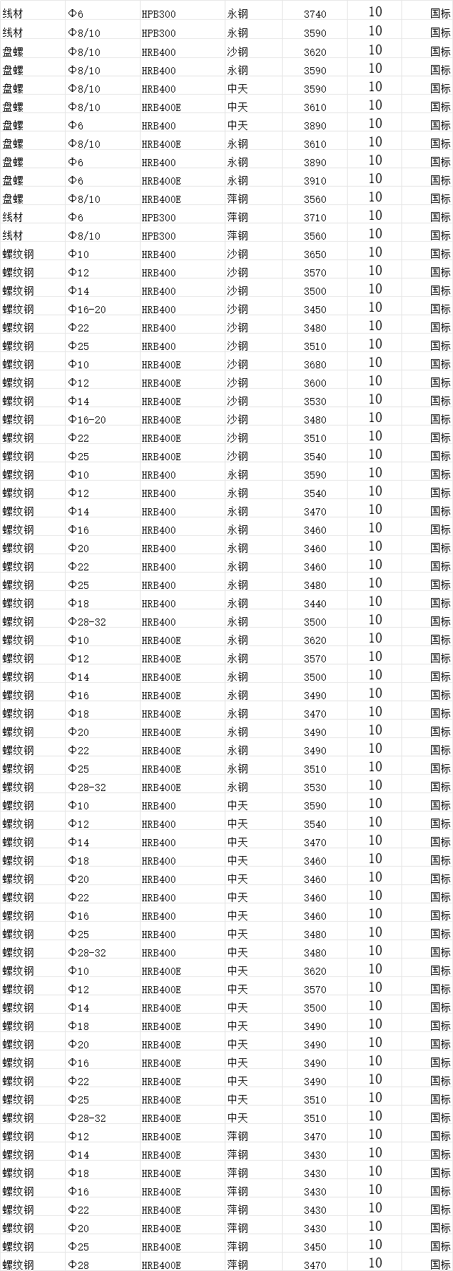 2025年10月6日(10.15)舟山錦海倉(cāng)鋼材建筑材料價(jià)格